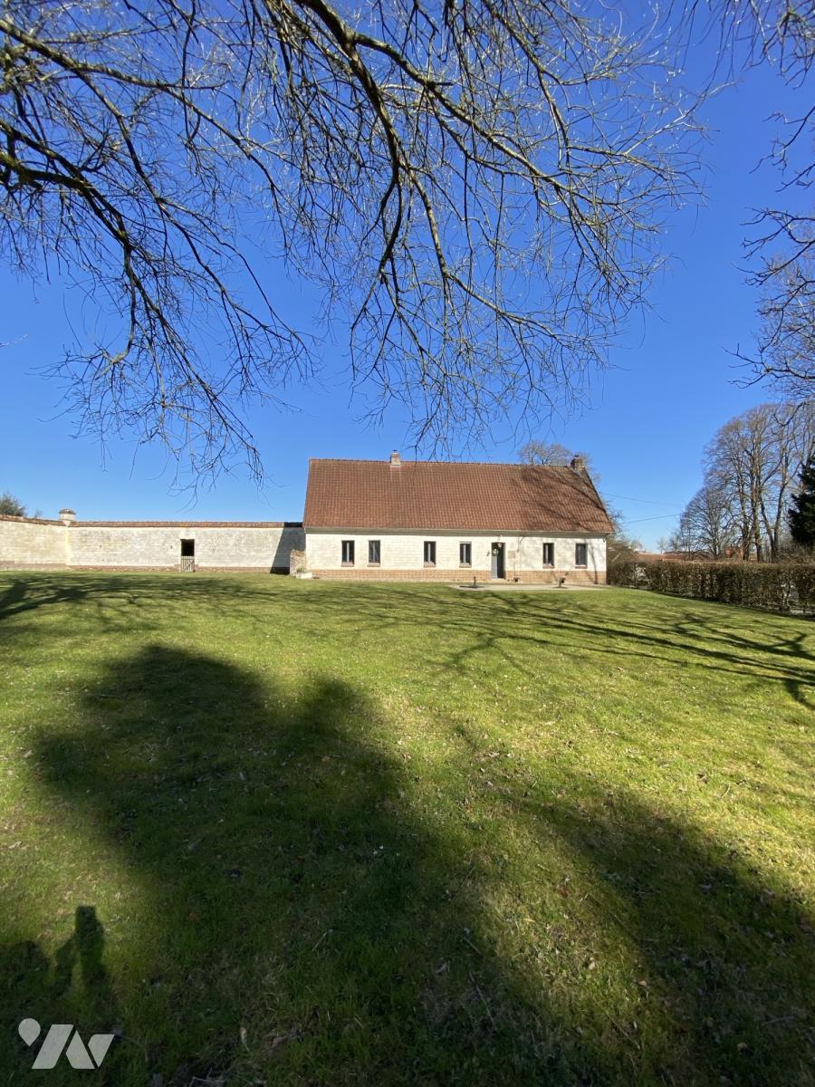 A Berles-Monchel, à proximité immédiate du Château, dans la campagne arrageoise et située au cœur du village, je vous invite à découvrir cette charmante maison, type longère, en pierres blanches, de 188 m², composée :